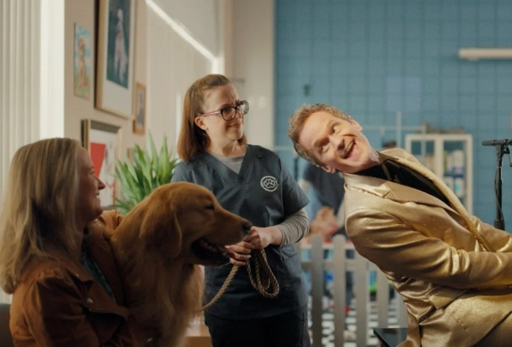 The second commercial is set in a pet groomer, with Harris singing a tune including: