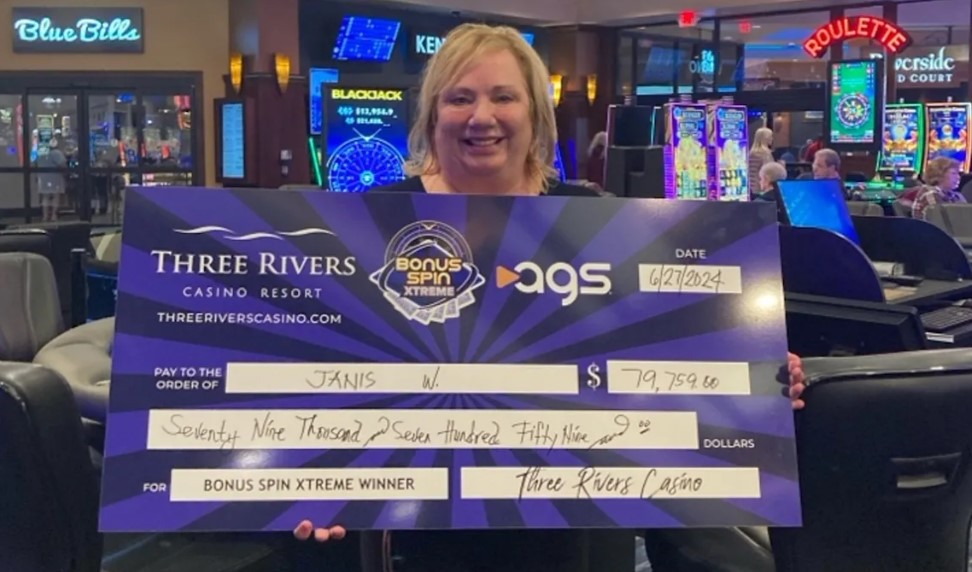 At Three Rivers Casino Resort, history was made when a lucky player at the table games struck the casino’s first-ever Triple Diamond prize on the Bonus SpinTM Xtreme progressive side bet from AGS. The player, who was playing a connected blackjack game called Bonus Spin Xtreme, won the top progressive jackpot of $79,759 after placing a $5 side wager. This player also triggered the hot seat.