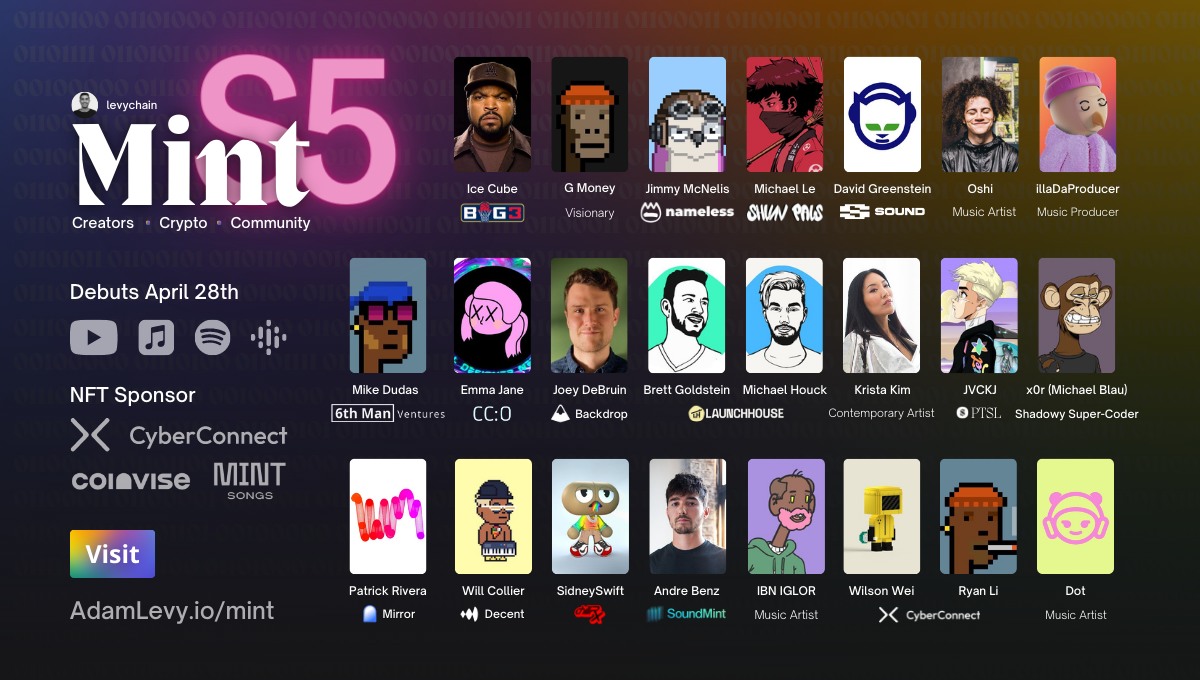 Adam Levy returns to the frontier of the Web3 creator economy with the fifth season of Mint, a leading audio and video series exploring how the creators of today are building the communities of tomorrow using Web3 primitives such as social tokens, NFTs and DAOs, to name a few.