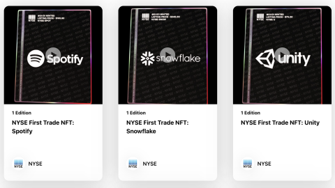 Last year April, the NYSE minted its first series of NFTs honoring six hot tech stocks that debuted on the world’s largest bourse, including Spotify, Roblox and Coupang.