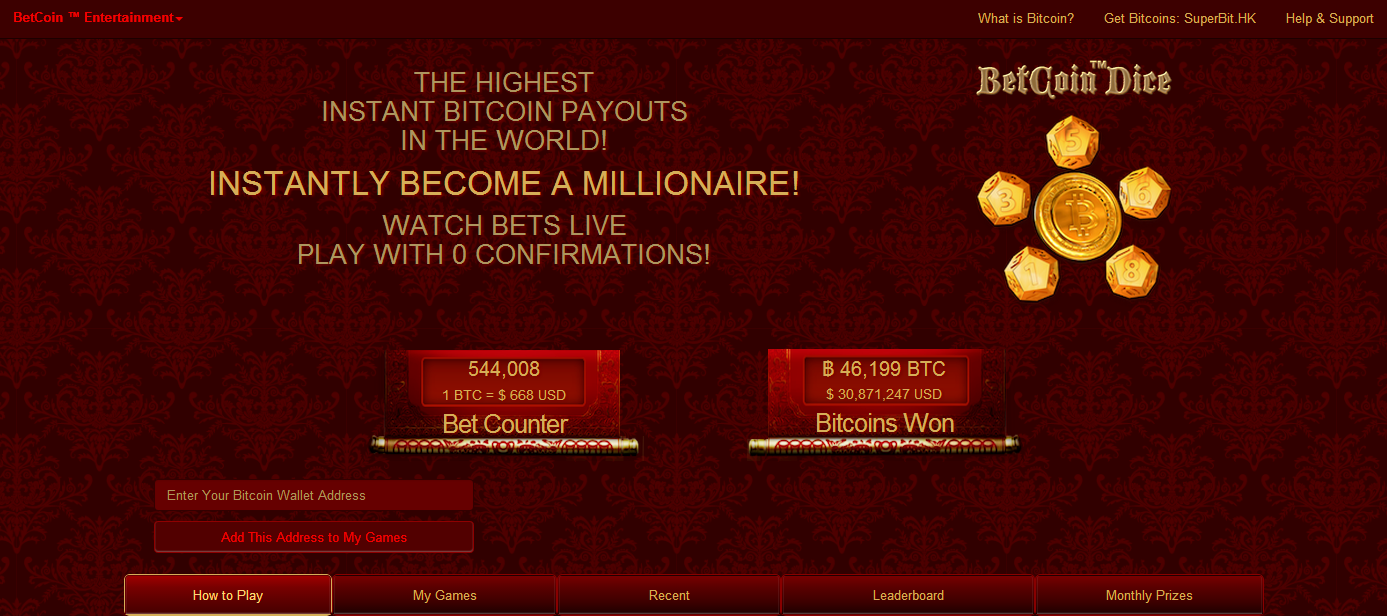 Betcoin Dice is one of the most popular Bitcoin dice sites in the Asia/Pacific area, targeting mainly players from there but also accept all other players of course. They do a lot of advertising across the Bitcoin community and claims to provide the highest instant Bitcoin payouts in the world and that you can become a millionaire with just one game.