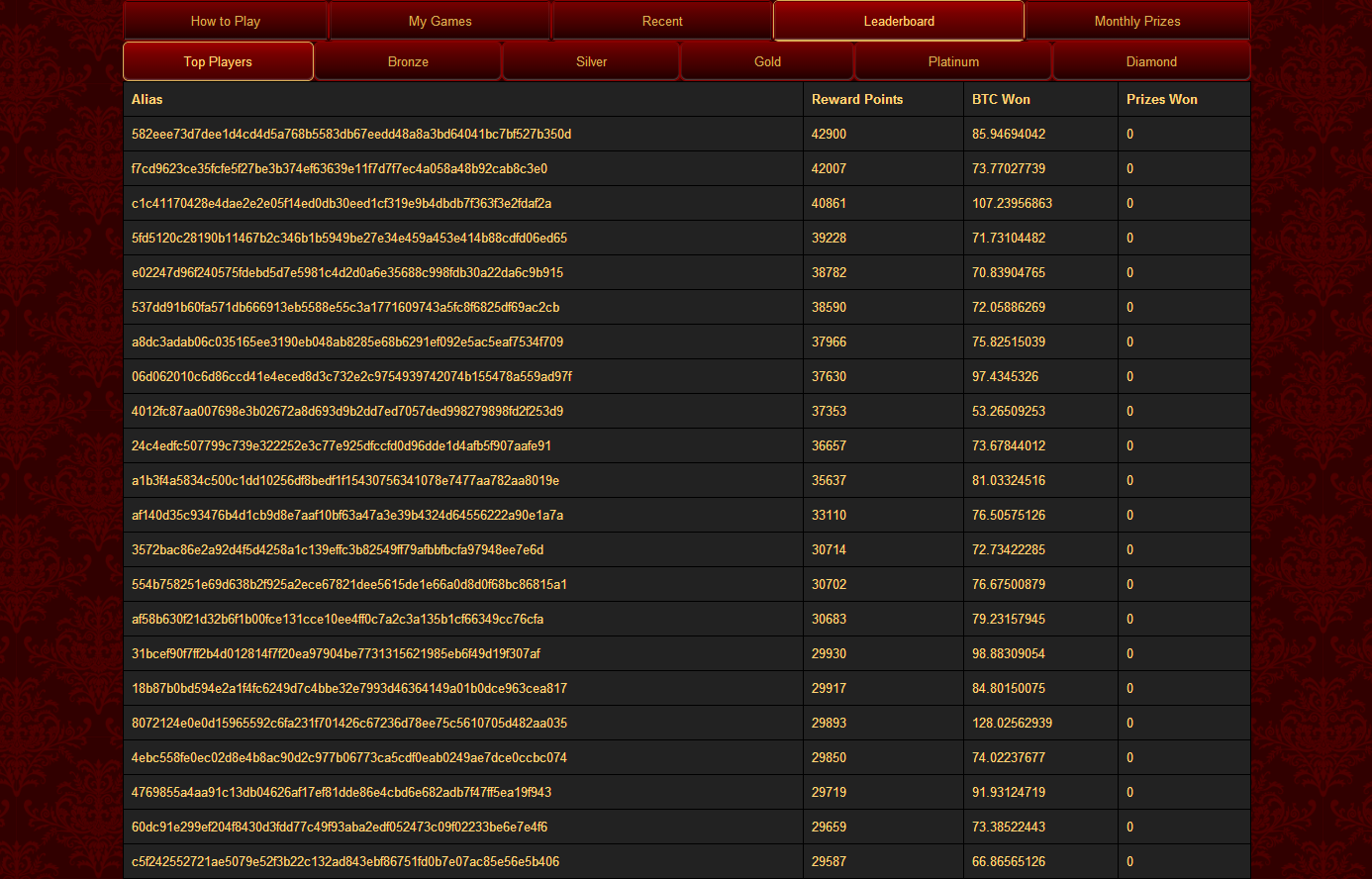 Betcoin Dice is not a common Bitcoin dice site, as they offer a very good promotion to their players called Dice Player League. The dice player league is basically a leaderboard based promotion, split into five different ranking systems. The different leagues are called Bronze, Silver, Gold, Platinum and Diamond and depending on the amount of Bitcoins that you wager in a month, you will be placed in one of the leagues.