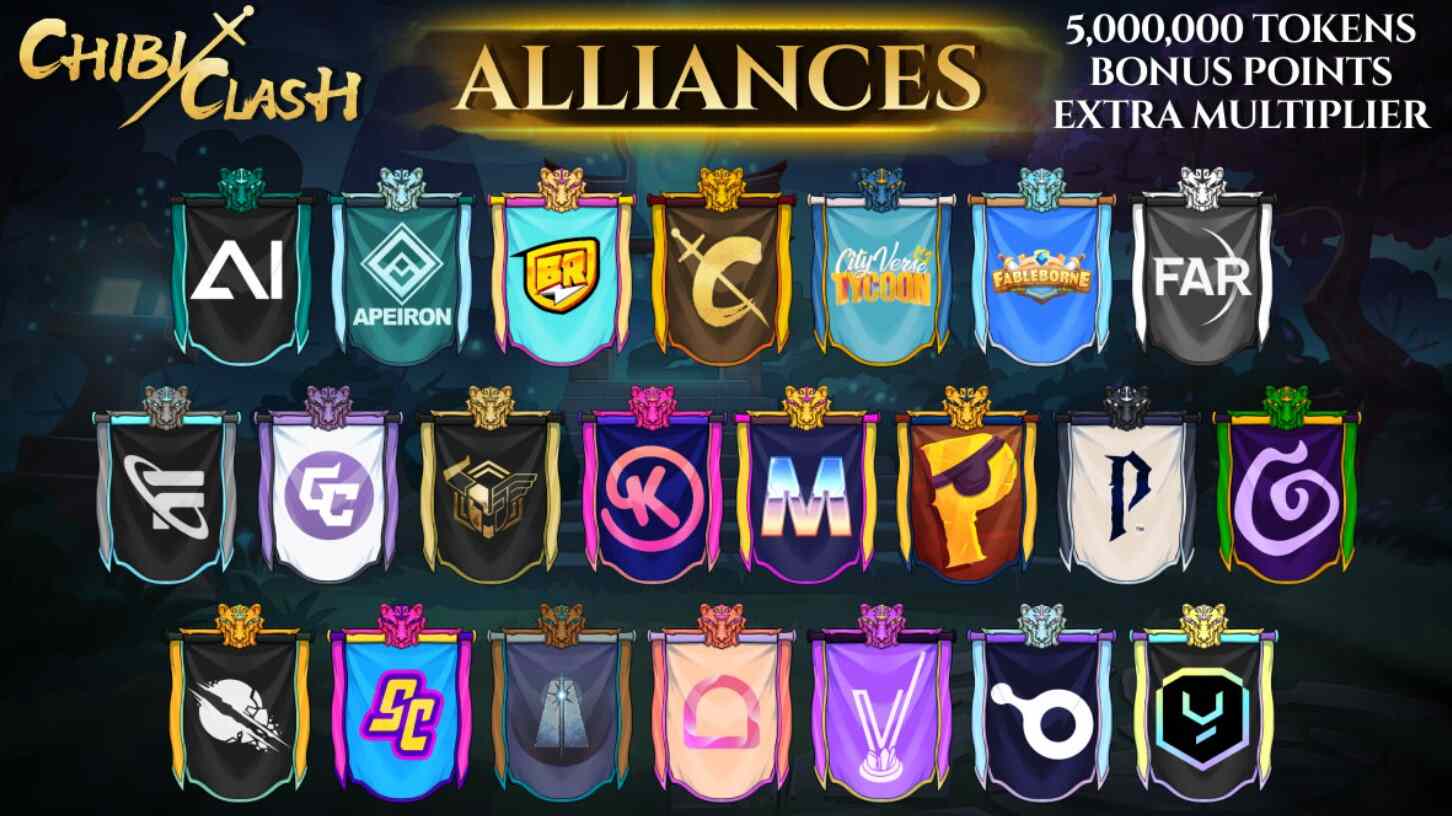 The map of Chibi Clash Kingdoms transforms into a vibrant battleground during the Kingdoms Alliance Event. Players can expect an engaging three-week competition. This event also includes collaborations with 21 partner projects within the Chibi Clash ecosystem, including AI Arena, Apeiron, Pixelmon, Pirate Nation, Shrapnel, The Beacon, Xterio, and Yield Guild Games (YGG).