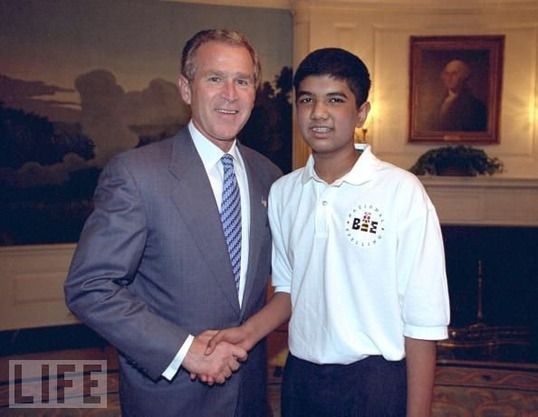 With President George W. Bush after winning the Scripps National Spelling Bee