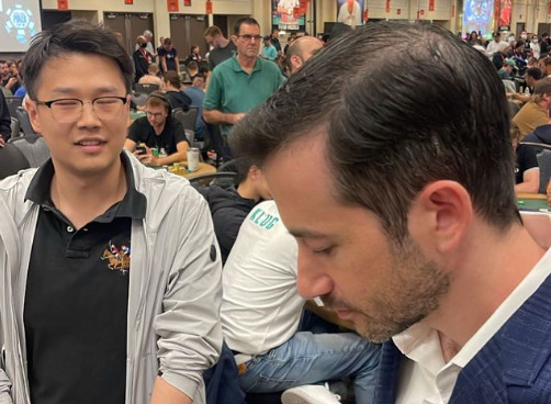 Entering the day with a minuscule stack of 3 big blinds and immediately putting down the big blind, Gao asked his tablemates to refrain from raising his first big blind. He hoped for some leniency from his opponents, understanding the dire situation he faced. Although his table players did not necessarily take it easy on him, he was able to hang on, doubling up in the first hand of the day.