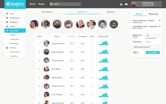 Players can interact with other bettors through the platform, track their performance and compete against other bettors to see who is the best.