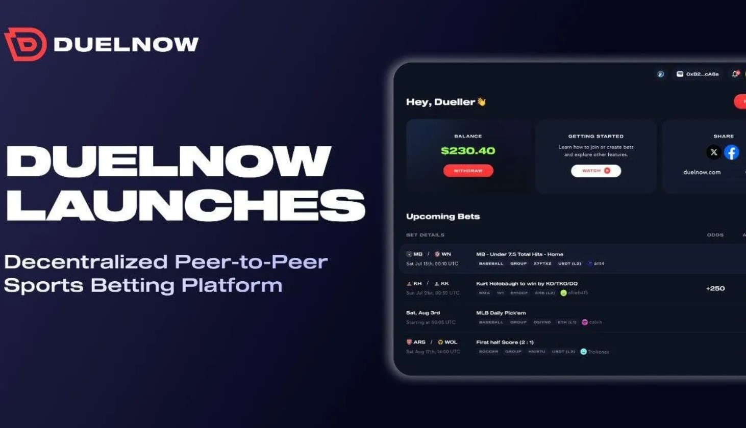 “DuelNow is not just a platform; it’s a complete overhaul of how sports betting and prediction marketplaces work,” said Simon Yu, CEO of DuelNow. “We’re blending the excitement of sports with the innovation of blockchain technology to create an unparalleled user experience. Our goal is to empower users with a decentralized, transparent, and secure way to engage with sports predictions, transforming both the crypto and betting landscapes in the process.”
